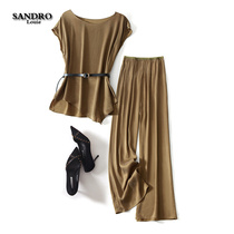 Daily light luxury and thin and vertical bronze - sleeved tops Broad legs and thin summer dress two suits
