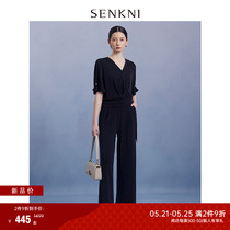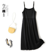 Spring and summer 2023 new Hepburn Wind Black Hanging Dress in the suit with soft breathable and folded splice