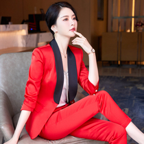 Red acetic satin professional suit women 2023 spring and autumn new Korean air fashionable two pieces of female