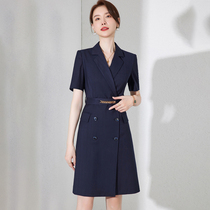 Rsemnia High End Career Short Sleeve Dress 2023 New Tibet Blue Double Row Closed Suite
