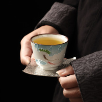 Master Chen Weichun's ceramic embossed gilt accompanying master cup single cup handmade master-built tea cup gift