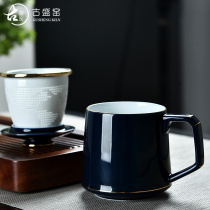 Gusheng kiln new gift box original ore ink jade glaze ceramic gilt silver agate glaze large tea cup personal single cup