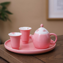 Ceramic hand-painted one pot and two cups tea set dry bubble tray gift set Japanese simple style small fresh quick cup teapot