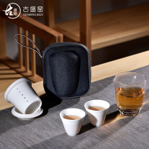 Gusheng kiln's new Zhenghei travel tea set portable bag type outdoor car travel quick cup one pot three