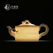 Suet-fat jade tea set with gold appliqué and glaze cover bowl teapot tea cup tea canister tea wash teapot set gift box