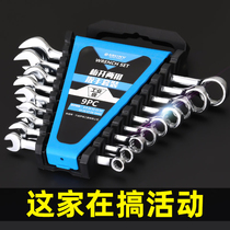 Double-head wrench set opening plum blossom wrench ratchet plate 14 auto repair tools a set of dual-purpose wrenches