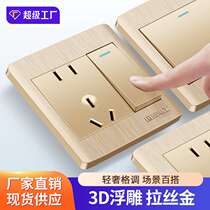 Two-open multi-control switch switch panel, one-open multi-control champagne gold wall switch socket panel SUB five-hole one
