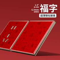 Two-open multi-control switch switch panel one-open multi-control ultra-thin blue tempered glass mirror panel home wall plug