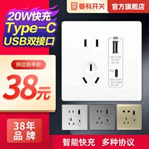 Manke 20W dual USB five-hole Type-cPD fast charging socket panel mobile phone charging type 86 concealed