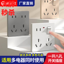 Big brand switch socket concealed gray 86 type household wall 16A one open double five-hole USB socket panel