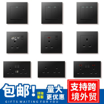 Wall-mounted 13a socket panel electric switch light panel with USB home concealed black crystal mirror switch