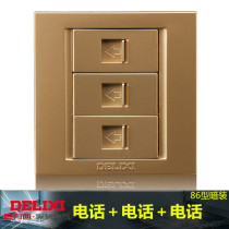 Deri West Telephone Socket Champagne Gold 86 Type Three Telephone Socket Panel Two-core Telephone Office Special Socket