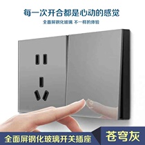 International electrician household type 86 concealed ultra-thin tempered glass wall switch socket panel gray five-hole