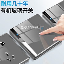 Gray switch socket tempered o glass panel large plate with indicator light single joint single control switch one open wall