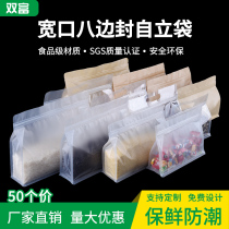 Wide mouth transparent frosted eight sides sealed self-standing bag high-grade jujube walnut snacks dried fruit food packaging bag 50 Price