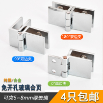 Hole-free all-copper glass hinges, wine cabinet door hinges, thickened glass cabinet door hinges, hinges, door clips