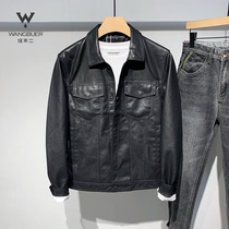 Leather men 2021 autumn high end business men's fashion fashion slim size Joker lapel jacket jacket