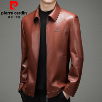 Pierre Cardin autumn new leather men Middle-aged dad wear thin leather jacket men's lapel loose leather jacket