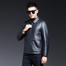 Haining leather leather men's head layer sheep spring and autumn coat middle-aged dad dress lapel casual thin jacket