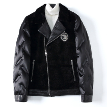 Leather and hair men Haining fur coat cashmere winter cashmere jacket stand collar shoulder casual men's leather clothing