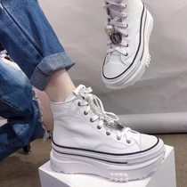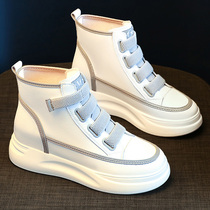 Joker high white shoes women 2021 Autumn New thick-soled inner high board shoes Korean version of Velcro leather women's shoes