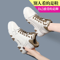 High-help small white shoes women's leather 2021 New Joker thick-bottomed cake shoes increased thin super fire father shoes European goods