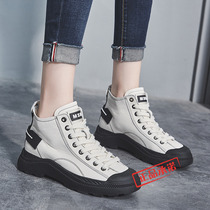 Tide brand 2021 Spring and Autumn new leather high-top shoes women's ins canvas shoes Joker plus velvet board shoes casual short boots tide