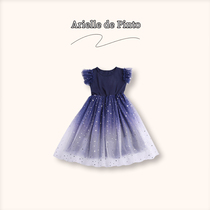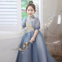 Blue children's dress female 2021 new high-end puffy gauze princess dress girl piano performance summer