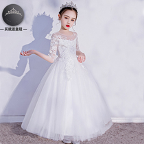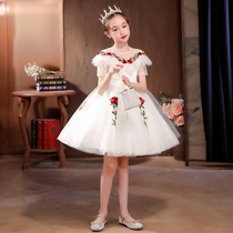 Girl dress white foreign princess dress children's piano performance costume flower girl high-end host evening dress