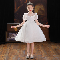Princess dress girl summer high-end dress puffy gauze flower girl wedding little girl birthday host piano performance White