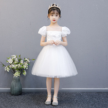 Children's dress Princess dress Flower Girl Wedding Girl White Girl Wedding high-end host piano performance dress summer