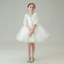 Princess dress girl birthday white evening dress little girl Flower Girl Flower Girl Wedding children's piano performance clothing long sleeve summer dress