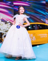 Children's high-end small host dress girl birthday party evening dress model catwalk show costume white summer