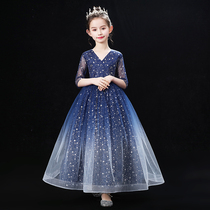 Children's foreign fashion show evening dress girl birthday princess dress puffy gauze little girl high-end piano performance clothing autumn