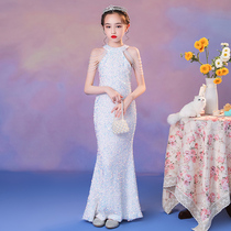 Girls' dress children's host piano performance princess dress summer high-end fishtail flower girl dance show catwalk