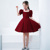 High-end girl dress red princess dress flower girl birthday girl host children's piano performance summer
