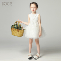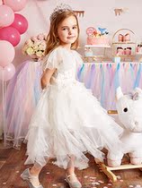 Children's dress snow princess dress girl puffy gauze small wedding flower girl host piano performance White summer