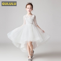 Girls lace dress dress tail flower girl wedding piano grade graduation June 1 performance host princess skirt