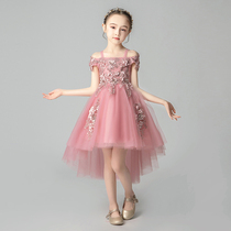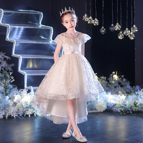 Children's evening dress flower girl show tail princess dress girl puffy gauze little girl host piano performance dress