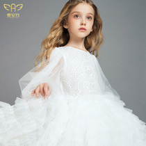 Aianjiu high-end catwalk wedding dress flower dress girl evening dress white princess dress children puffy foreign autumn