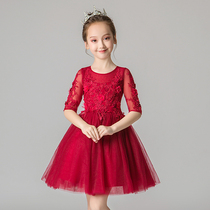 Children's evening dress girl birthday princess dress puffy gauze red flower girl host catwalk girl piano costume