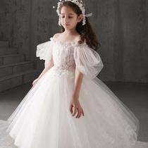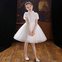 Children's dress Princess dress flower girl wedding little girl white girl wedding dress high-end host piano performance autumn