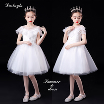 Children's white dress Princess skirt mesh lace puffy girl piano performance host foreign-like super fairy short