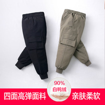 90 velvet autumn and winter new baby children warm down pants boys and girls thickened military tooling wear down pants
