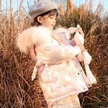 Children's down jacket girls ' winter clothes 2021 new 2 children's 3-year-old baby medium-long thickened coat bright foreign style
