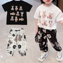 Korean girls summer new suit Female baby summer dress Yangqi net Red children's anti-mosquito pants short-sleeved two-piece suit