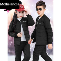 New children's down jacket liner suit Boys and girls cotton pants in large children's warm thickened two-piece set large