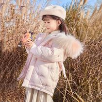 Korean girls winter down jacket 2020 new foreign style in the big child thickened white duck down in the long hair collar jacket