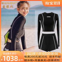 McGorley split swimsuit women's boxer pants long-sleeved sunscreen high waist slim sexy swimsuit hot spring beach swimsuit
