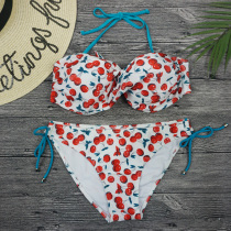 Cute barbed steel holder red cherry sweet big chest small chest split triangle bikini strap bikini women's swimsuit